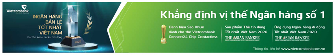 Năm 2020 cũng đánh dấu nỗ lực sáng tạo, đổi mới của ngân hàng Vietcombank với 3 giải thưởng “Ngân hàng bán lẻ tốt nhất Việt Nam”, “Thẻ tín dụng tốt nhất Việt Nam” và“Ứng dụng ngân hàng di động tốt nhất Việt Nam” trong khuôn khổ Giải thưởng Tài chính Bán lẻ do Tạp chí danh tiếng The Asian Banker trao tặng.